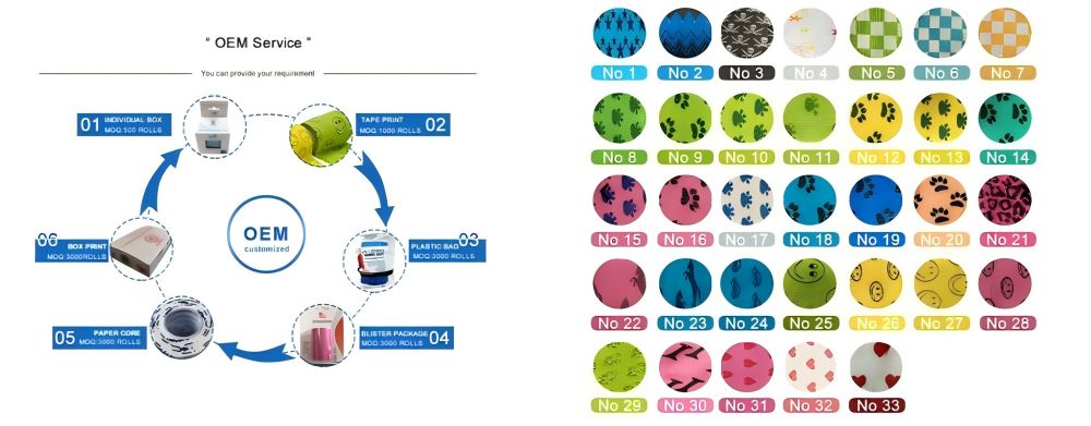 În plus, ambalajele veterinare tipărite au avut alte caracteristici, diverse scenarii de utilizare. Învelișurile noastre pot fi folosite ca bandă de șosetă pentru fotbal pentru a repara paznicii, bandaje coezive pentru cai pentru a sprijini articulațiile cailor și bandaje coezive pentru încheietura mâinii pentru a proteja încheieturile și a preveni rănile.